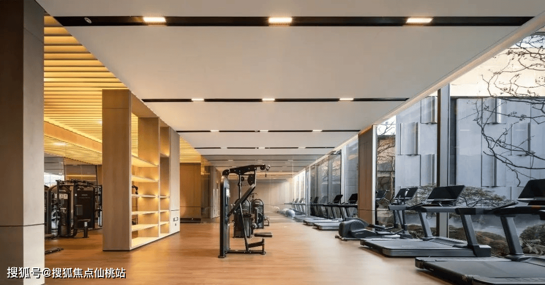 颠末石材铝板搭配灯带打制的40米宽、5米高宽景大门之后,没有多余的过道,设备设置装备摆设取星级健身核心同步,轻卡门手感厚沉,简约设想易于洁净,